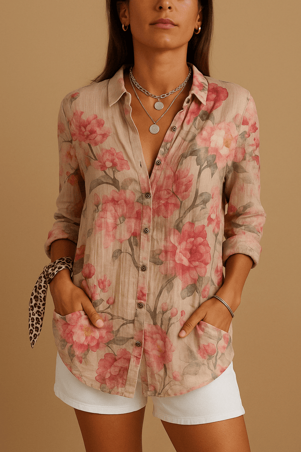 Denna blommiga långärmade blus är skapad för kvinnor som sätter pris på både stil och avkoppling. Tillverkad av lätt bomull, erbjuder blusen andningsförmåga och för dagligt slitage, vilket gör den till ett utmärkt val för avslappnade utflykter eller på jobbet.