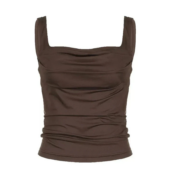 Upptäck det tillskottet till din dagliga garderob med vår trendiga rynkade topp. Tillverkad i en varm brun nyans erbjuder denna topp både en avslappnad passform och en smickrande siluett, vilket gör den lämplig för alla avslappnade tillfällen.