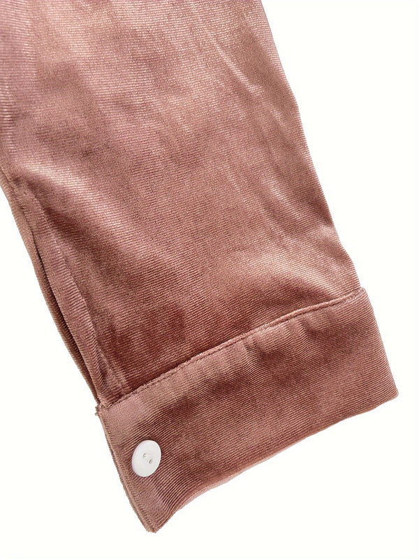 Denna kastanjebrun blus, tillverkad av premium satin, ger en sofistikerad touch till varje outfit. Dess stiliga design har två framfickor, vilket skapar en både stilren och praktisk look, för både avslappnade och formella tillfällen.