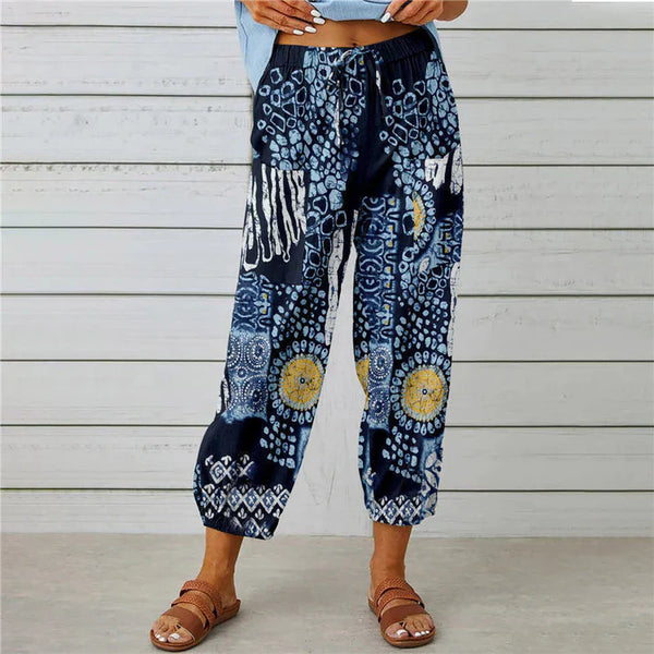 Kvinnors blommiga byxor i lättviktsmaterial – avslappnad passform för sommaren