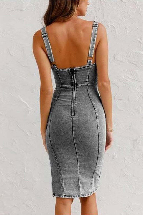 Är du redo att fräscha upp din garderob med denna trendiga denim midi klänning?