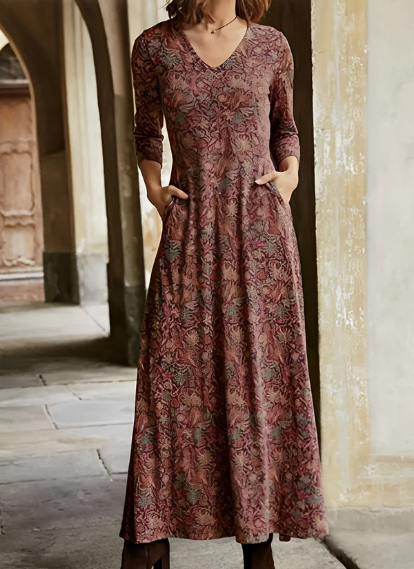 Kvinnors långärmad maxiklänning - elegant blommönster för alla tillfällen