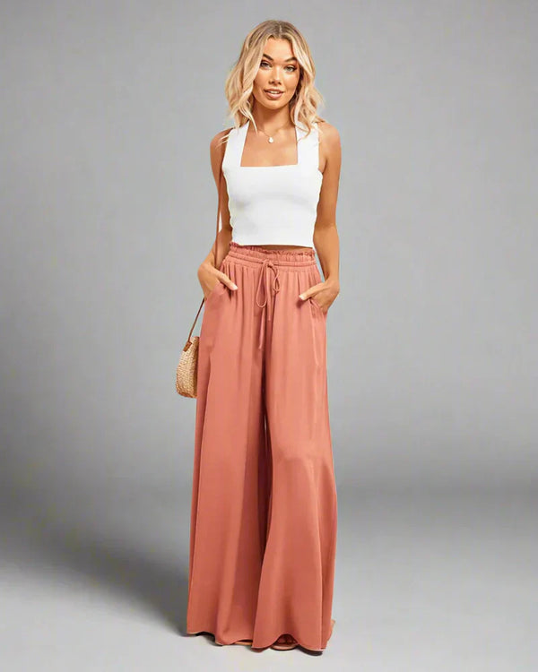 Kvinnors vida byxor med hög midja - trendiga lätta byxor för casual outings
