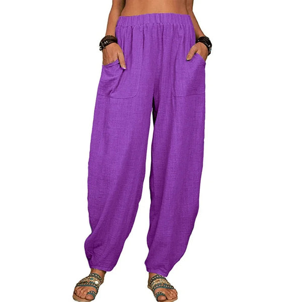 Linnenbyxor - avslappnade lösa fransbyxor för damer