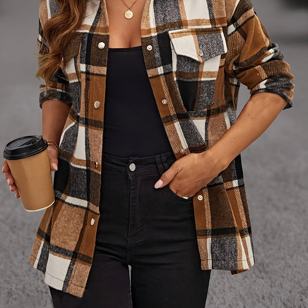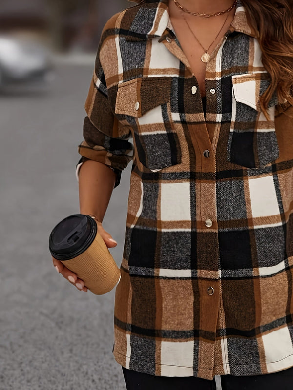 Mixed färgad rutig skjorta - mångsidig långärmad damovershirt