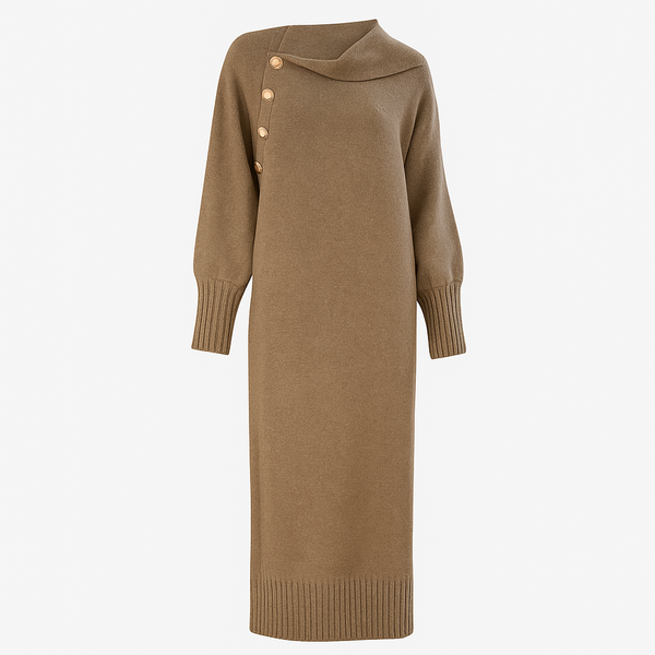 Upplev en sofistikerad stil med denna eleganta stickade klänning för damer. Designad för både mysighet och stil har denna klänning en unik knappdetalj som ger en klassisk touch. Den avslappnade passformen gör den för både avslappnade tillställningar och mer uppklädda tillfällen.